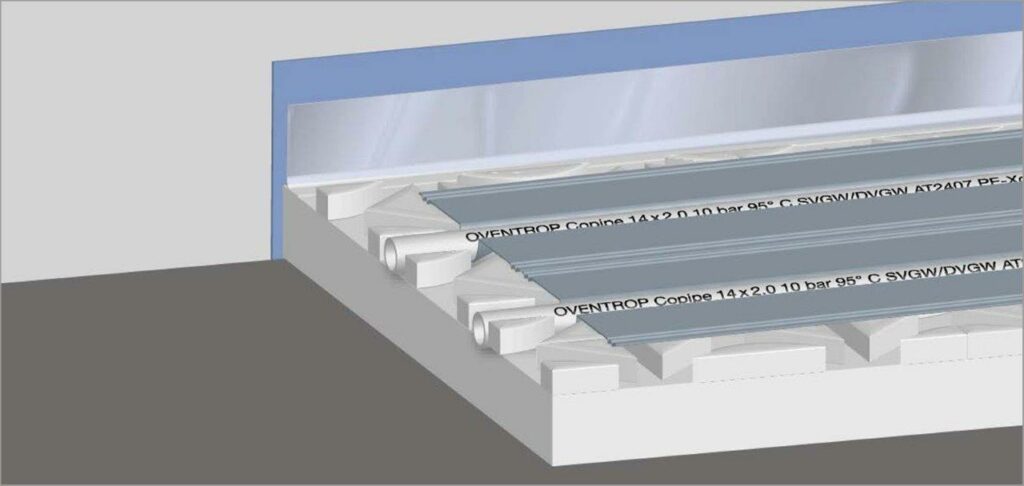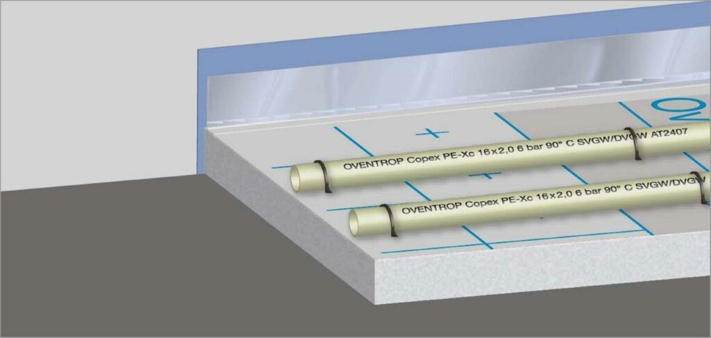 - kann auch bei mäanderförmiger Rohrverlegung als Wandheizung bzw. -kühlung verwendet werden